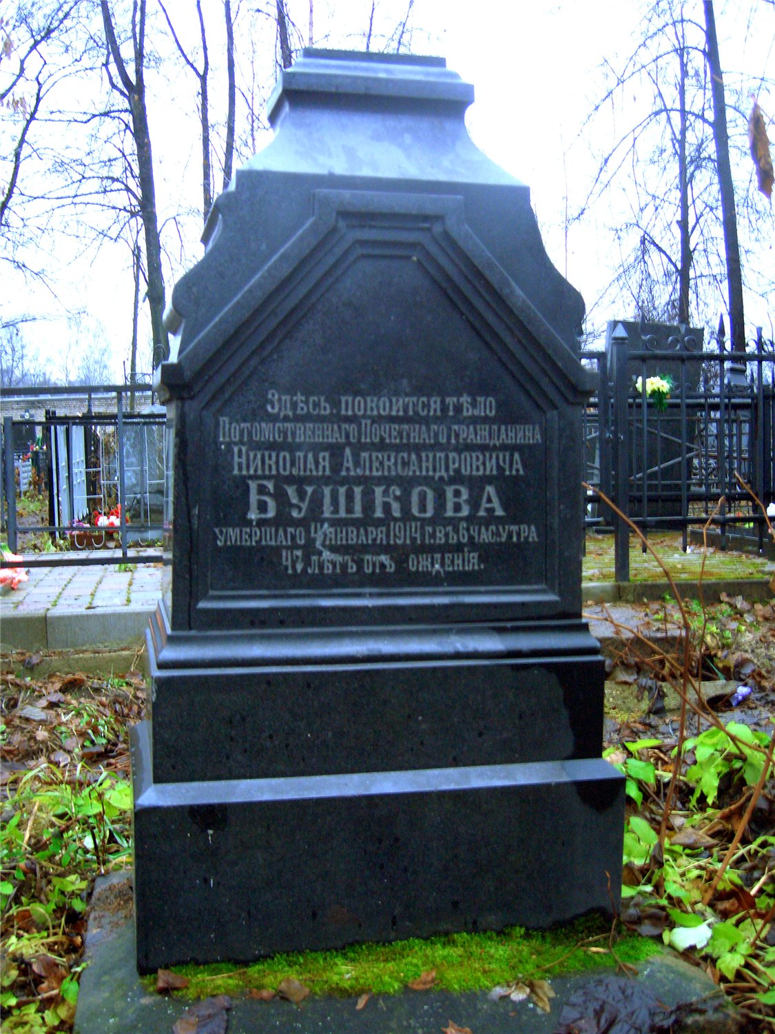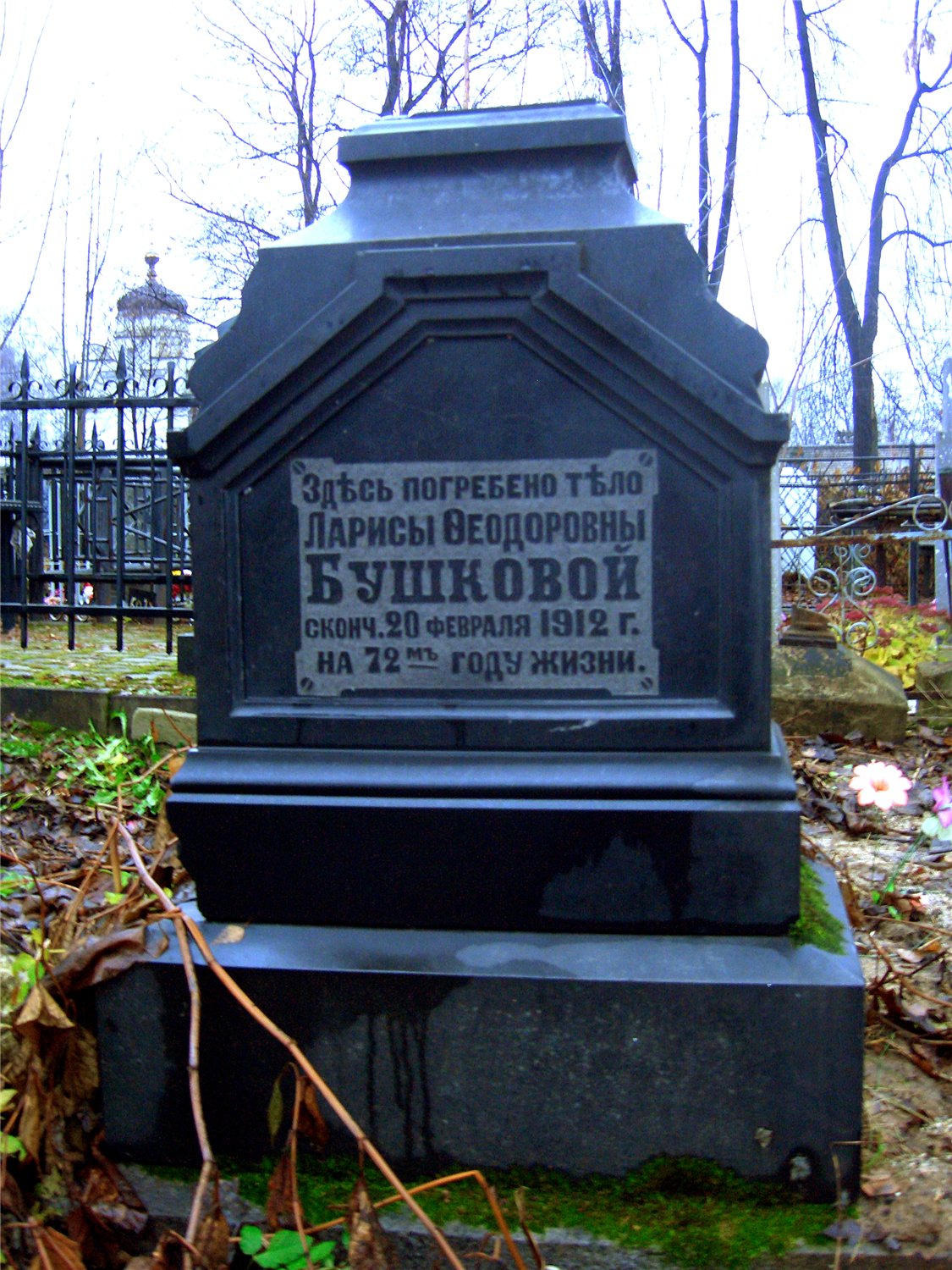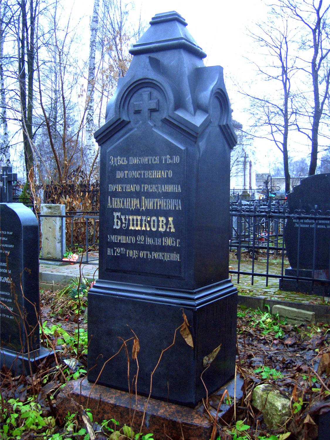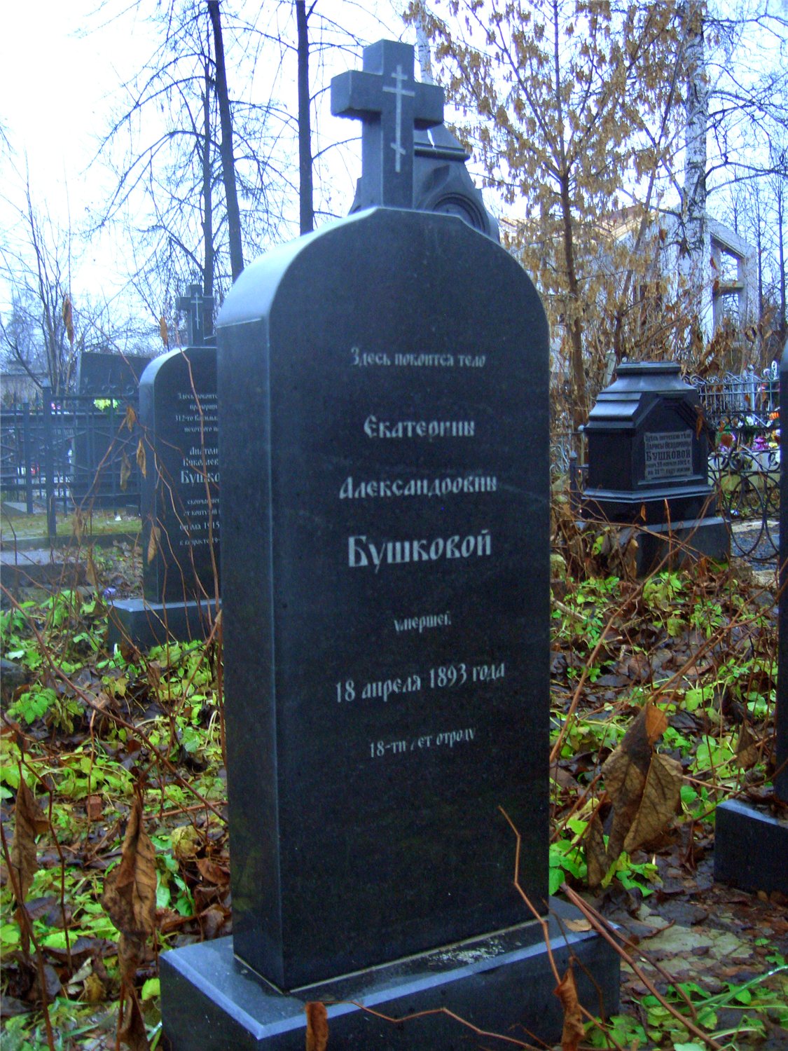 (северная часть кладбища, слева от главной тропы, ведущей к храму; примерно на равном расстоянии от ограды храма и часовни)