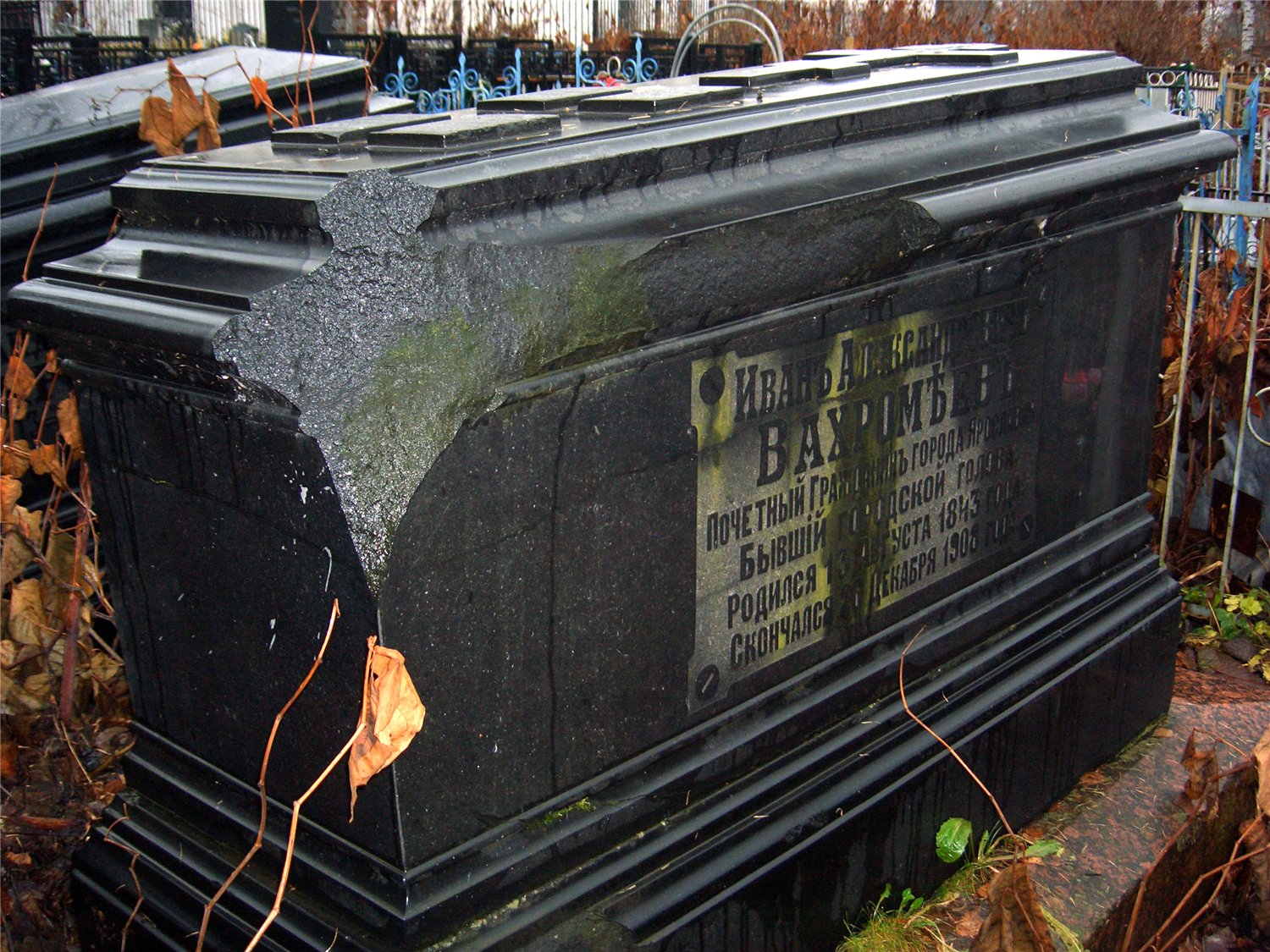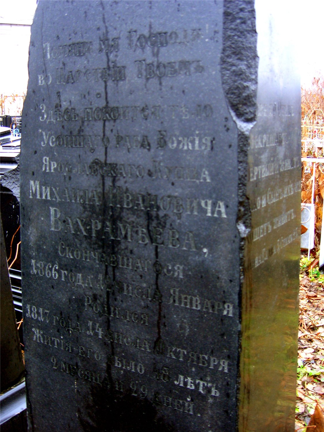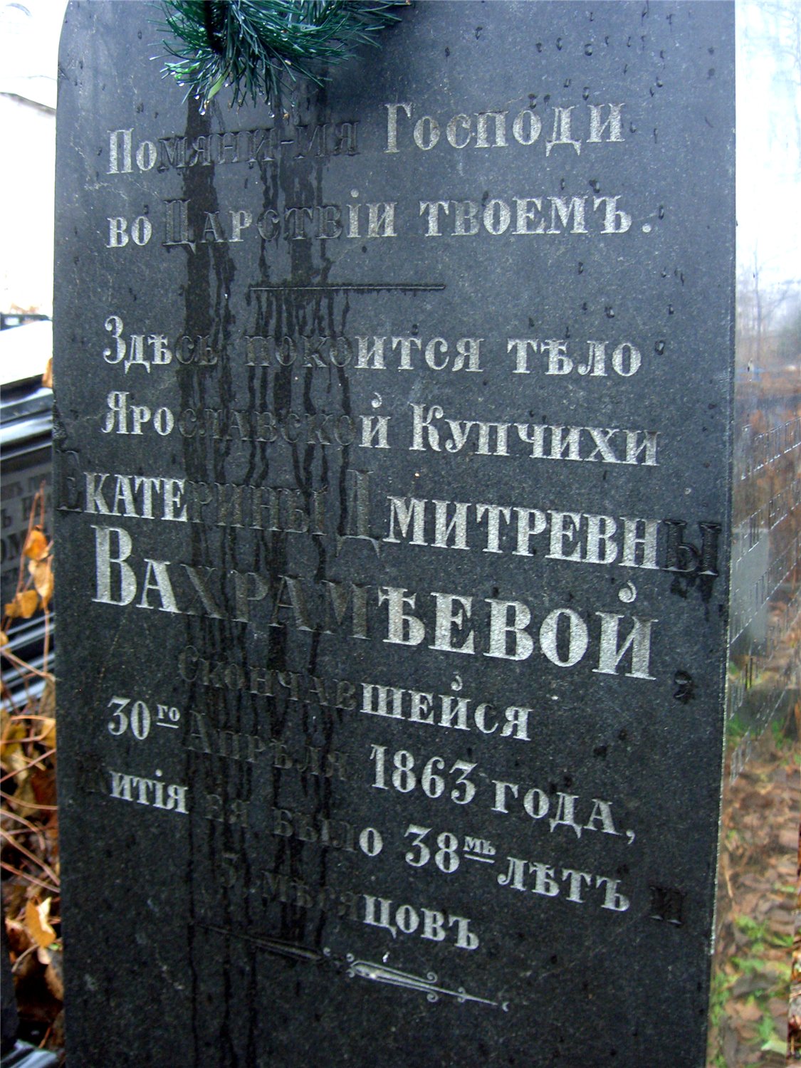 "... сын И.Ф. и Ф.М. Вахрамеевых, почётный гражданин города Ярославля, церковный староста в Благовещенском приходе г. Ярославля, в 1845–1848 гг. - ратман Ярославского городового магистрата ..."