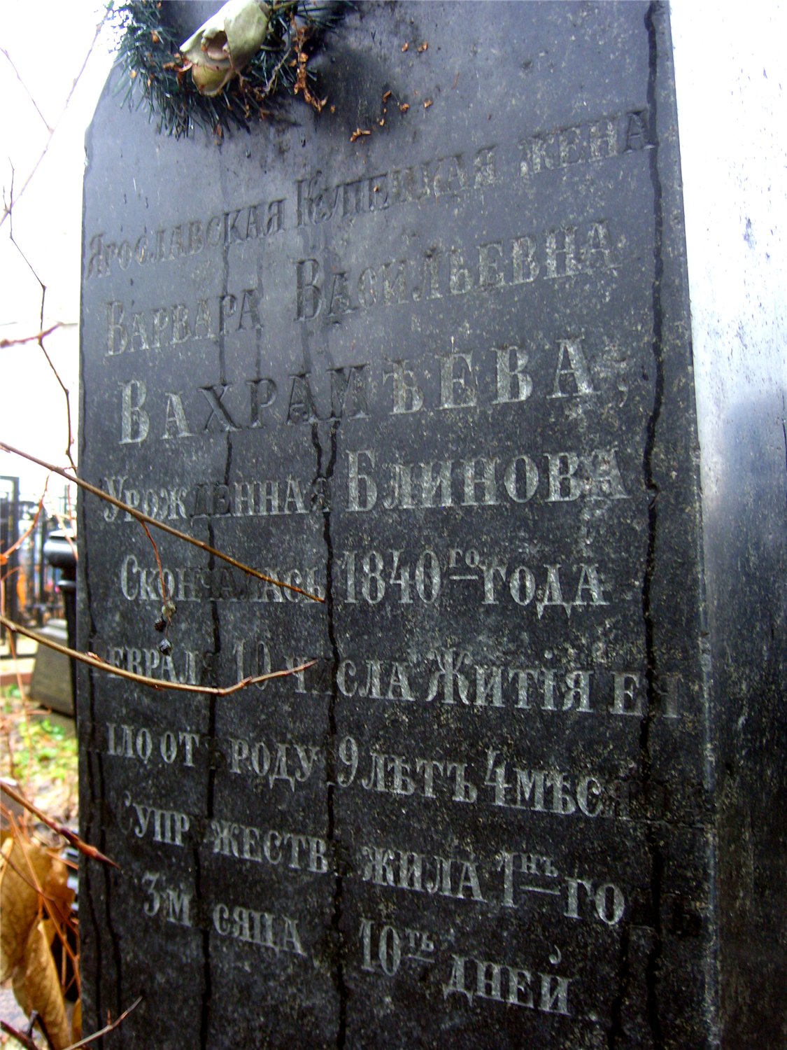 (восточная часть кладбища; захоронение - отдельно от предыдущего захоронения Варахобиных)