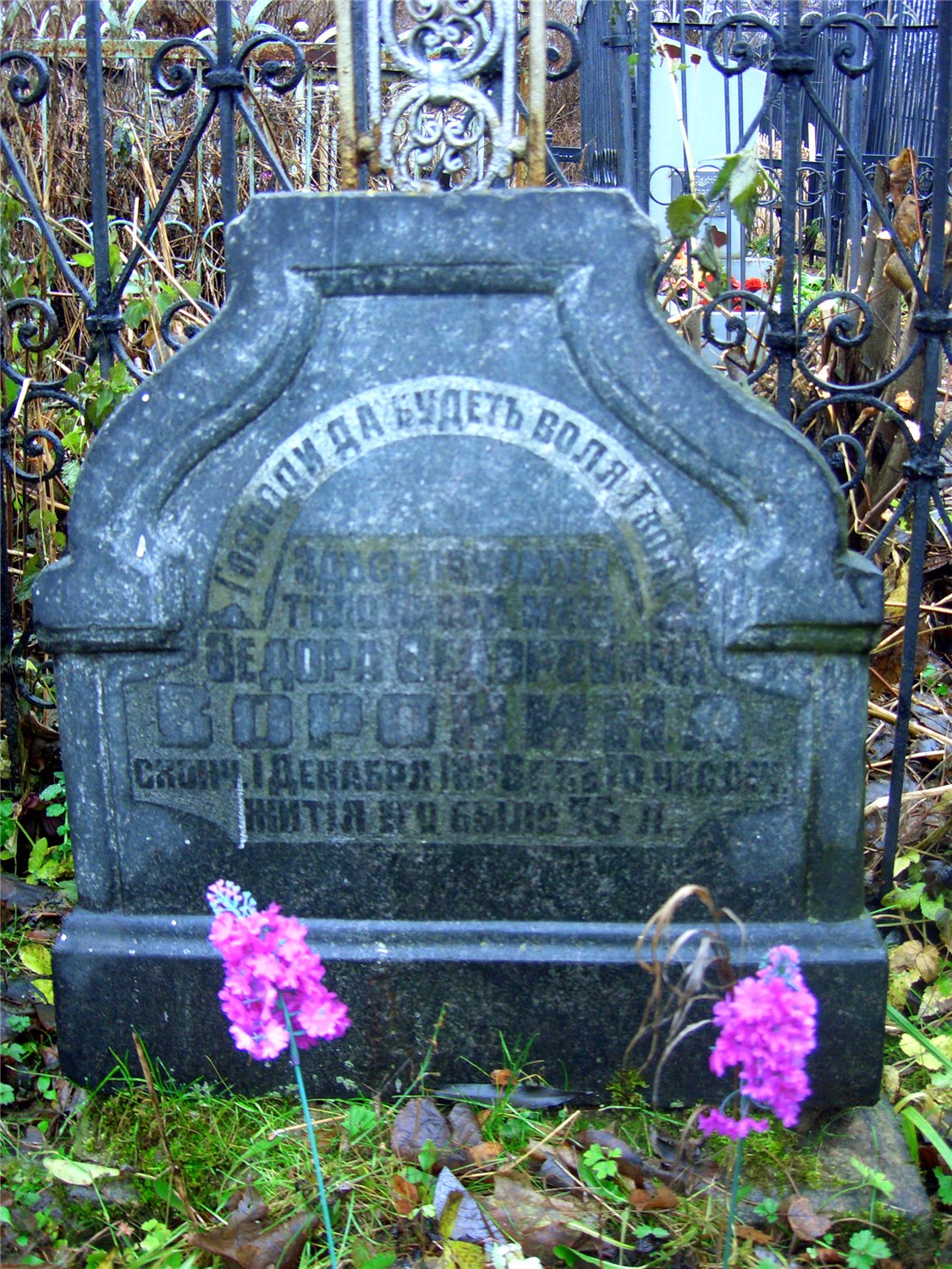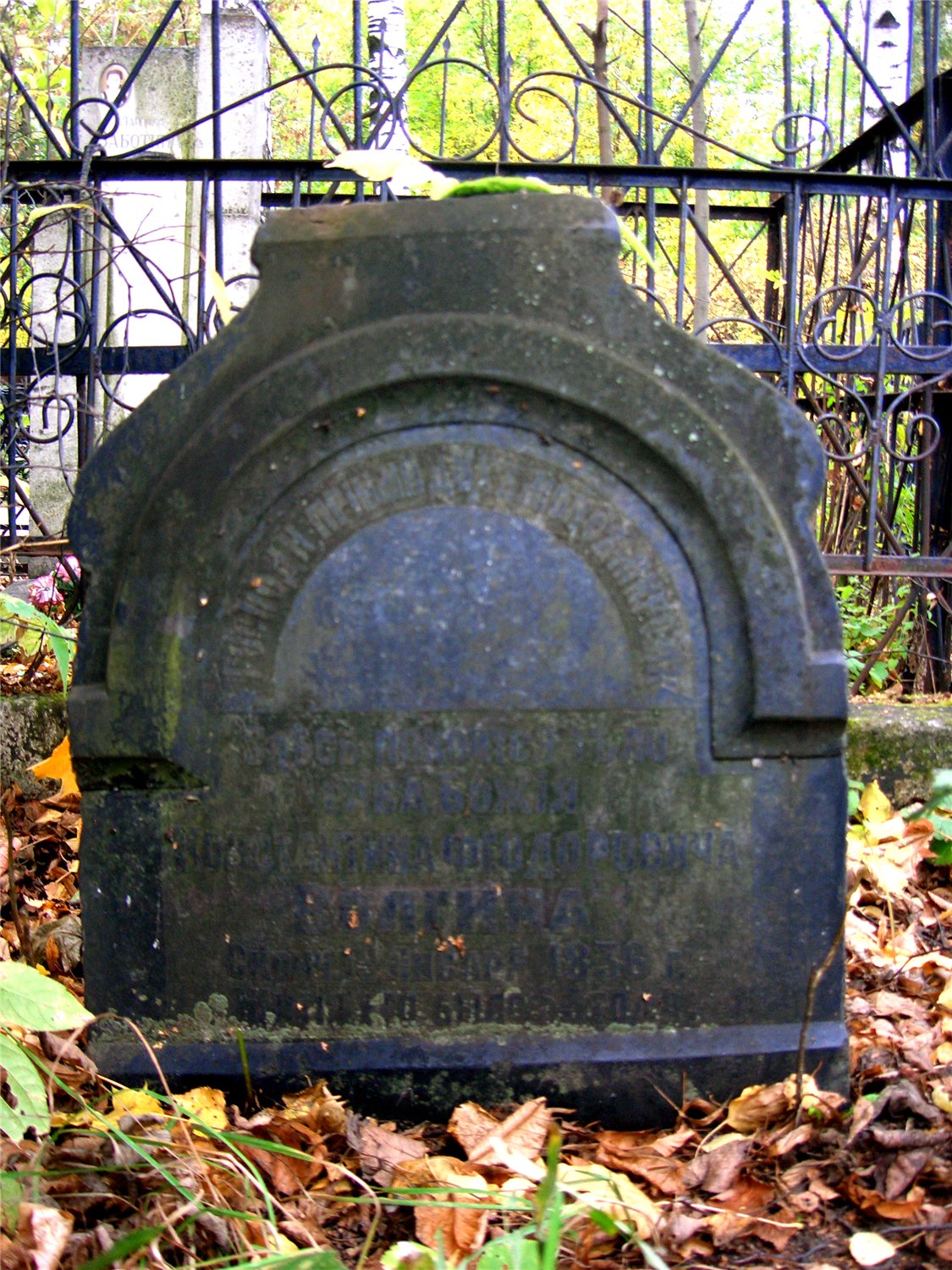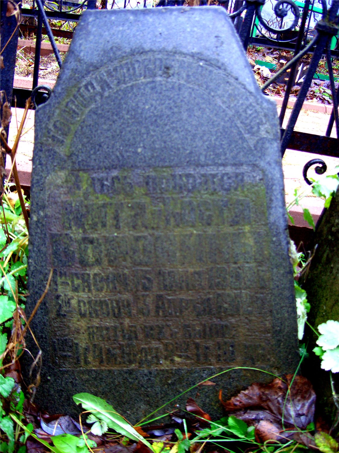 (Исторический очерк Ярославского Леонтьевского прихода (1608-1783) и кладбища (1783-1901). Священника Сильвестра Соколова. - Ярославль. 1901. С. 269.) Эпитафия не сохранилась.