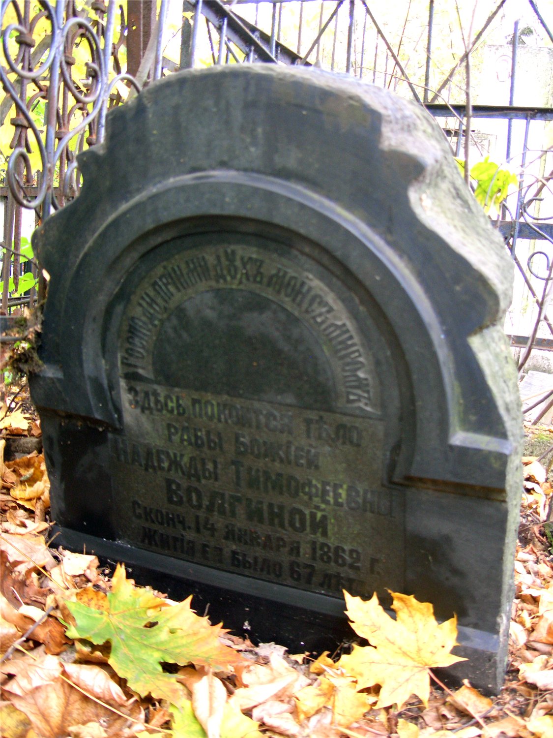 "...вторая жена К.Ф. Волгина, мещанская дочь; после смерти мужа торговала "мелочным и гуртовым железным товаром", в том числе в лавке в Ярославле вела торговлю "железным, скобяным, жестяным и чугунным товаром"".