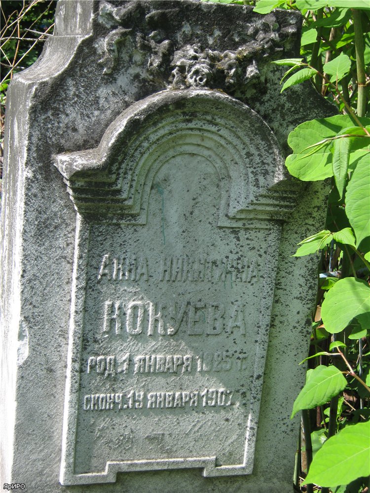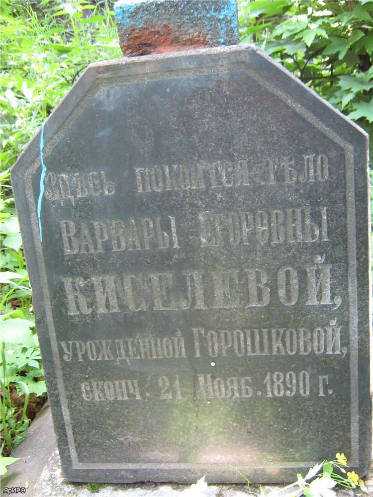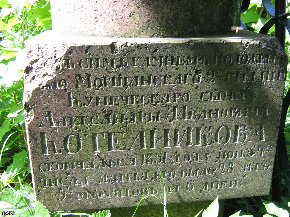 "+ 1855 г. 59 л." (Исторический очерк Ярославского Леонтьевского прихода (1608-1783) и кладбища (1783-1901). Священника Сильвестра Соколова. - Ярославль. 1901. С. 248.)