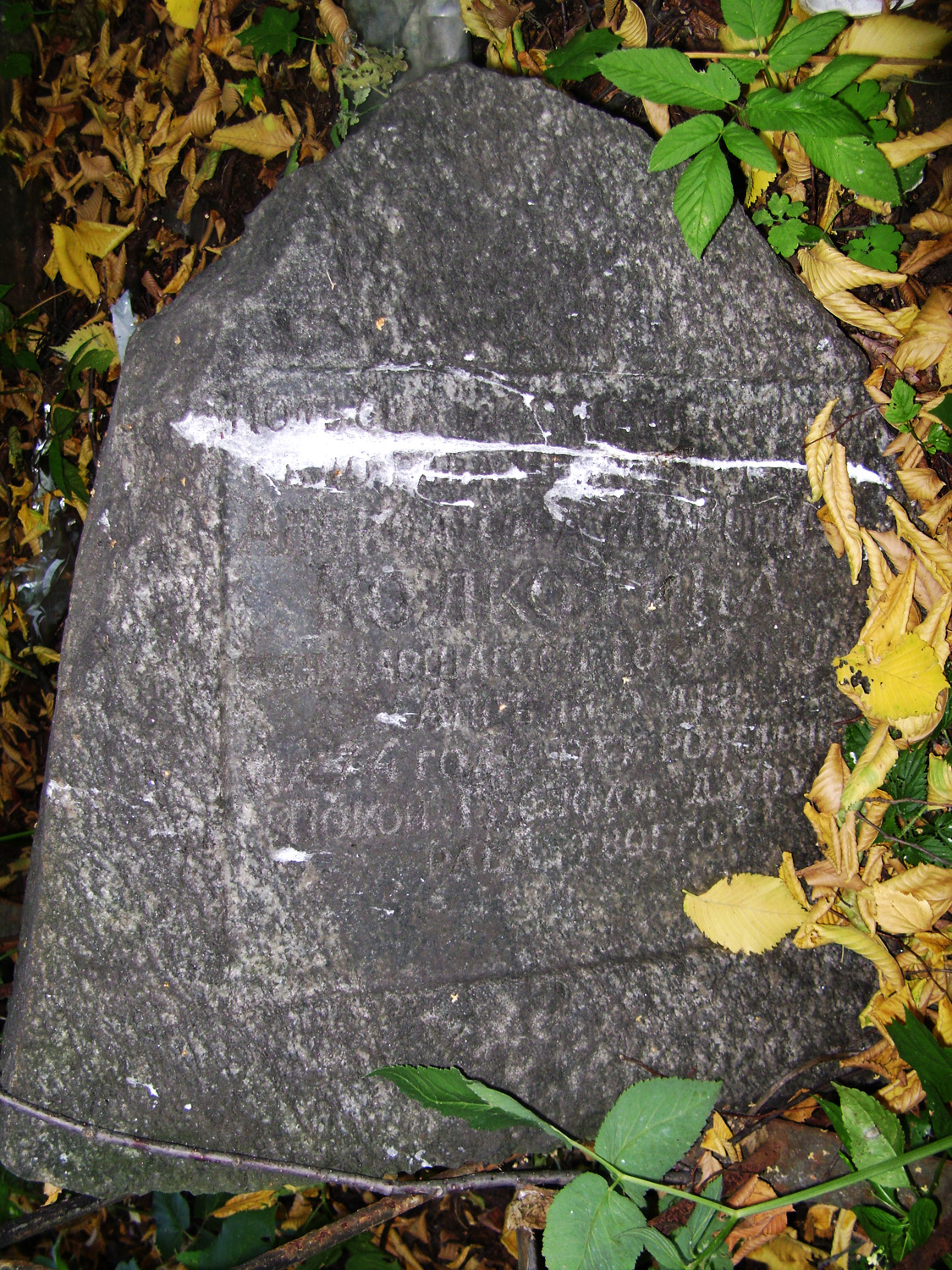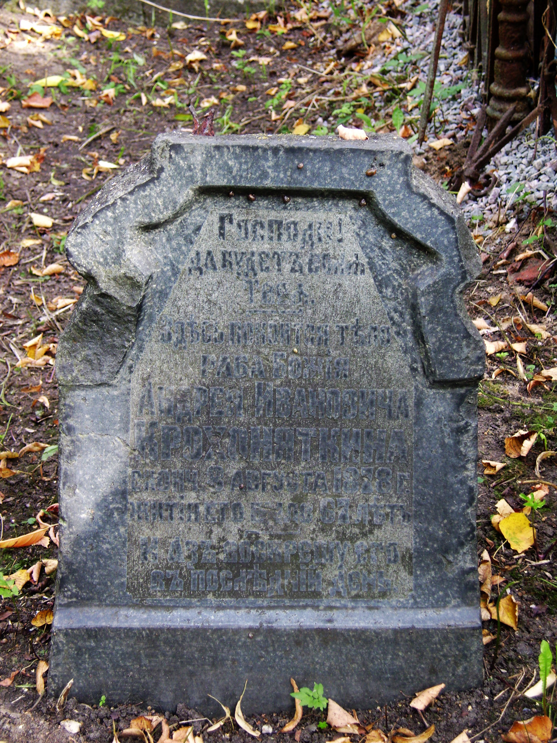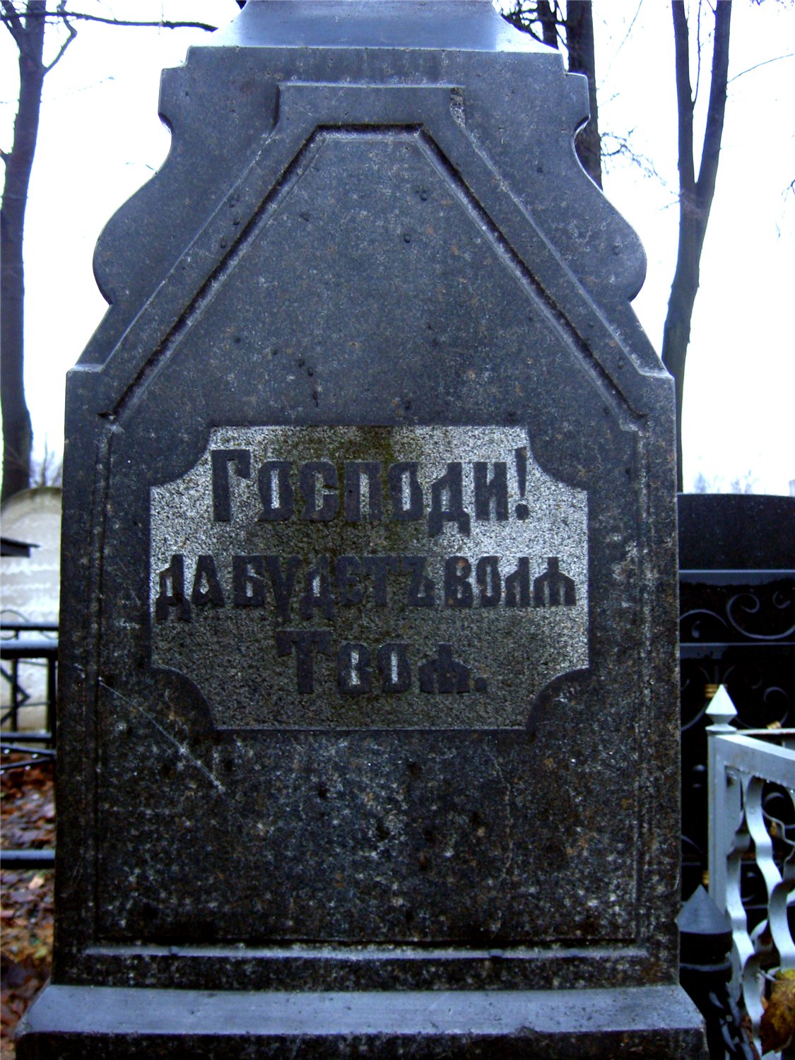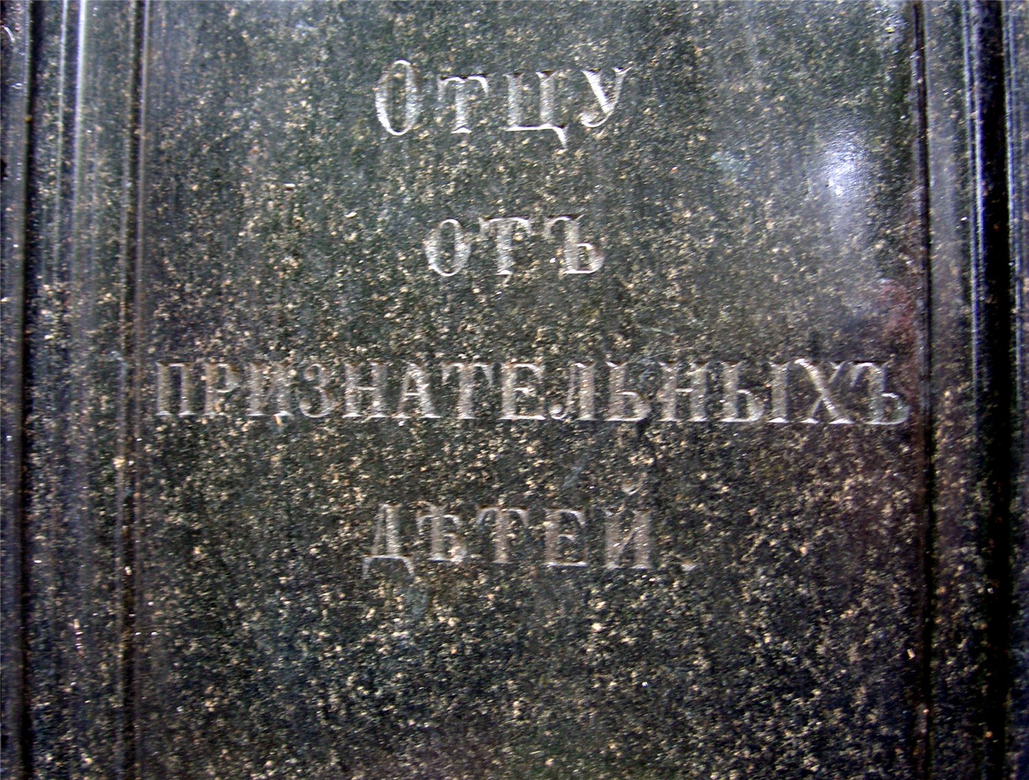 Одна из граней не читаема, верх надгробия повален и прислонён этой гранью к соседнему памятнику.