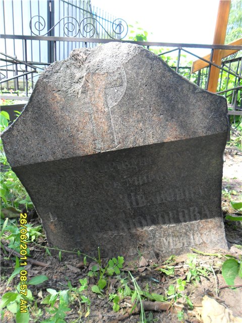 Памятник пролежал много лет надписью к земле, дата смерти Анны Васильевны не читаема (цифры стёрты). Поднят 28.10.2009, стоит на этом же месте.