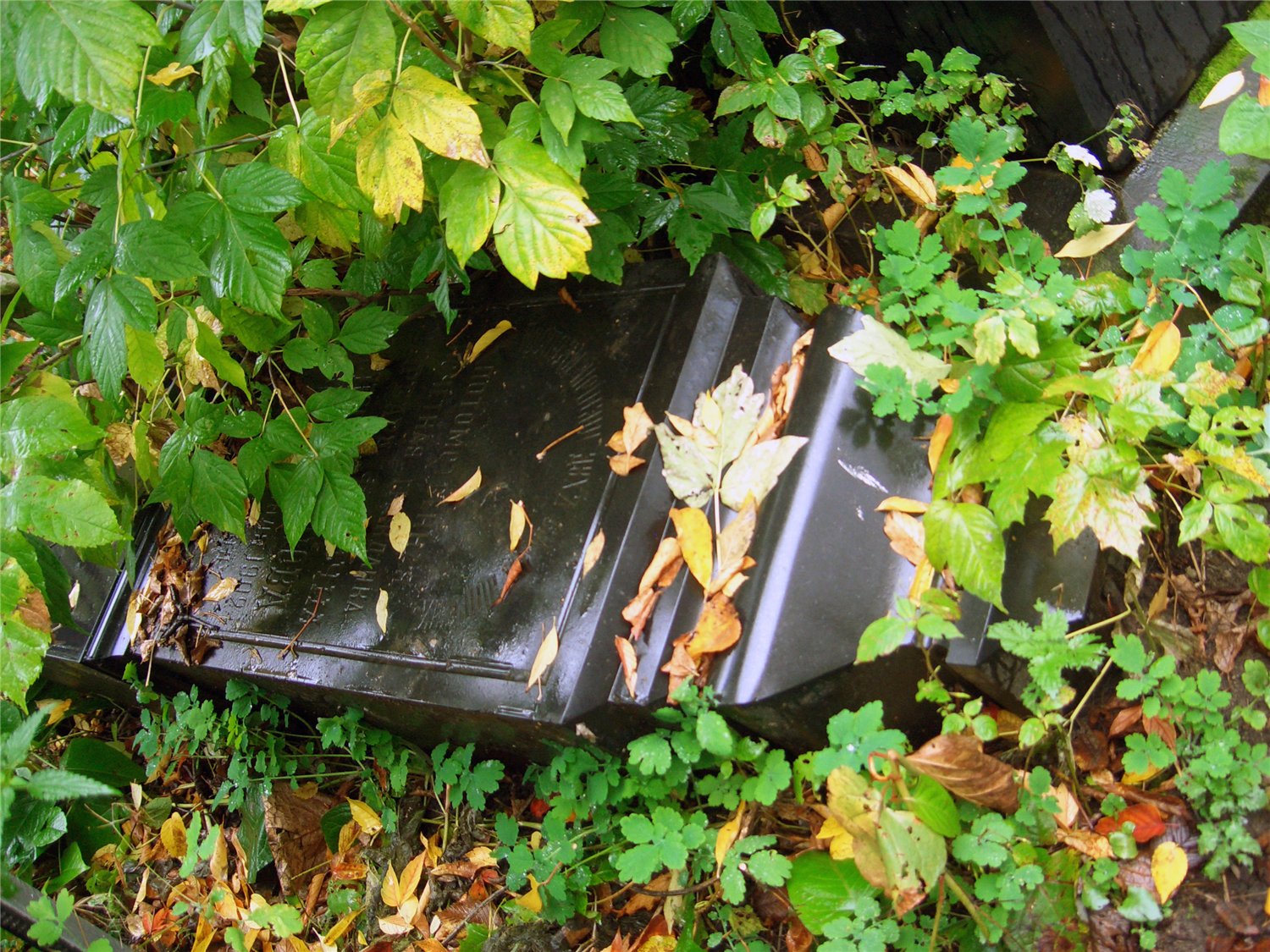 Рядом 2 поваленных паспортом вниз памятника. Оба, вероятно, из одной группы. Захоронение постепенно превращается в свалку...