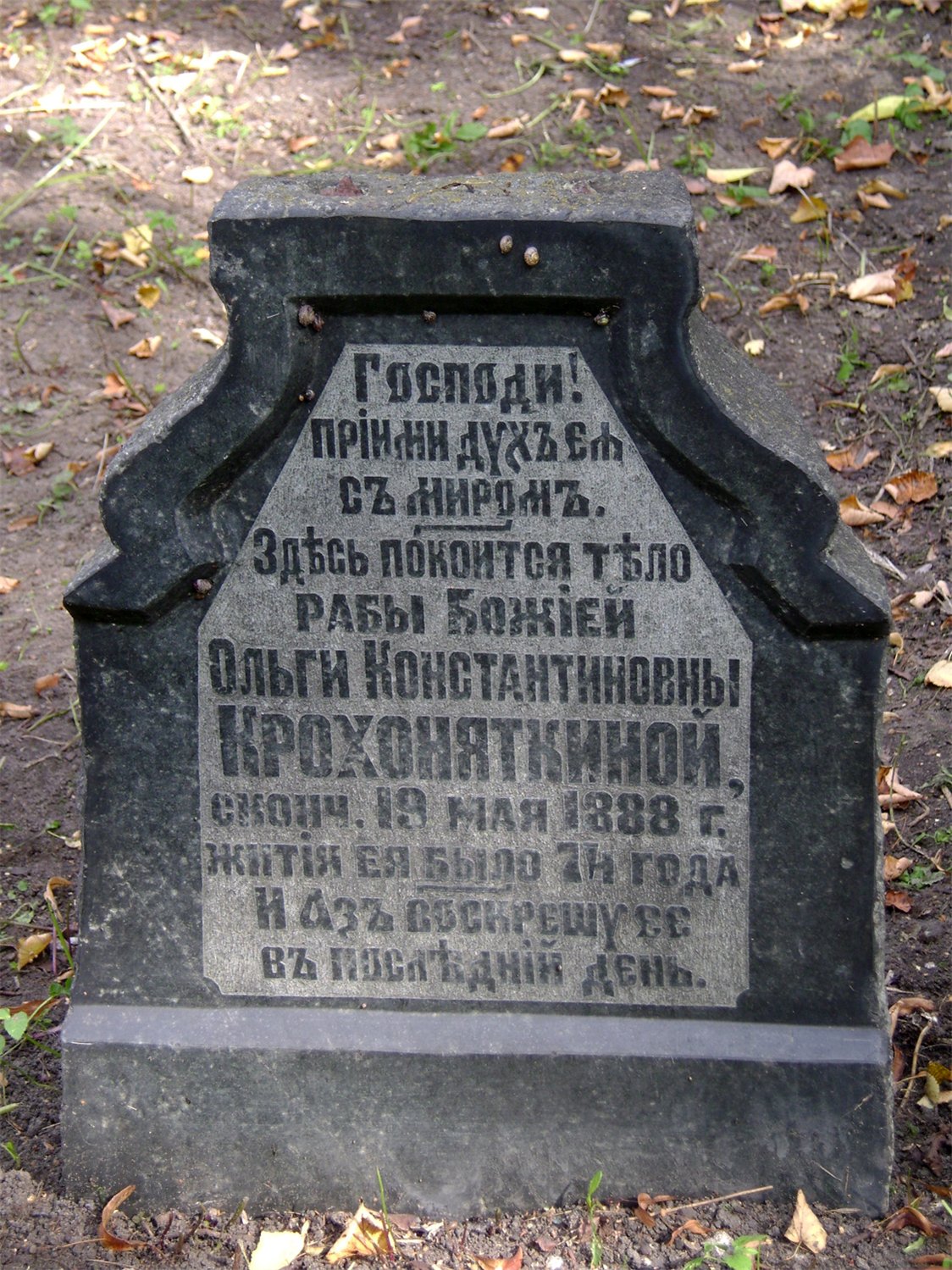 "...жена К.В. Константинова". (Ярославский некрополь. Леонтьевское кладбище. Справочник. - Ярославль, Ремдер, 2005. С. 55.)