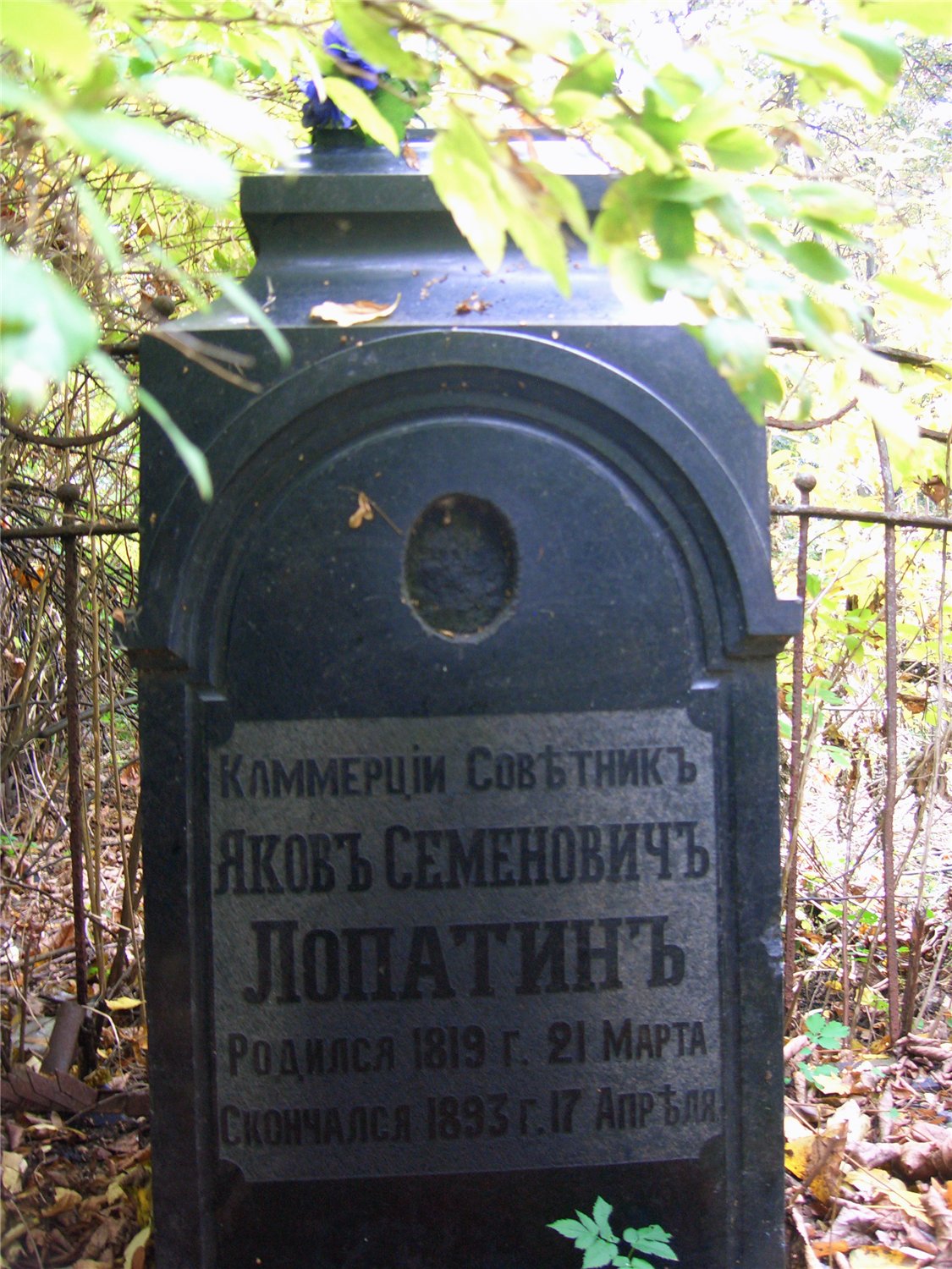Скончался 1893 г. 17 апреля
