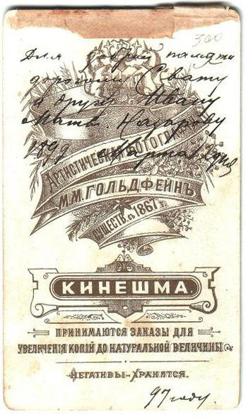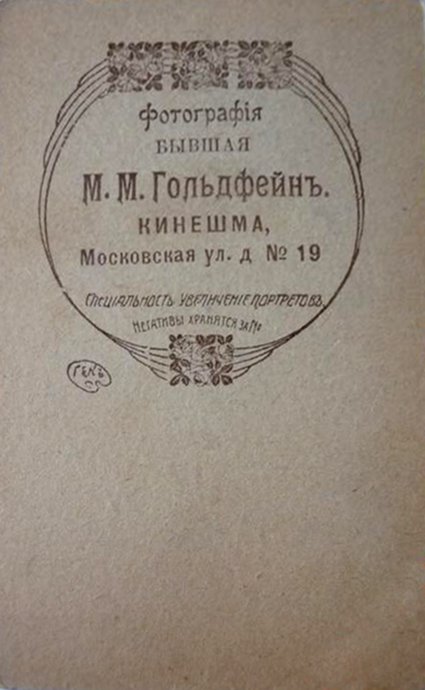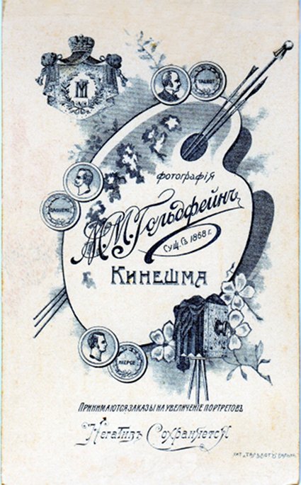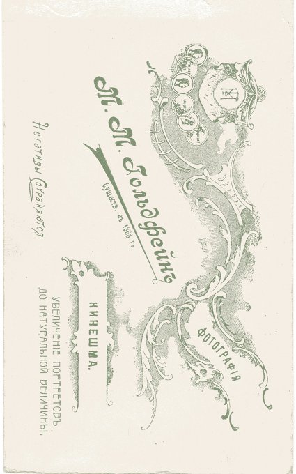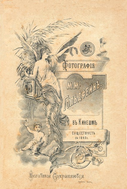 М. М. Гольдфейн. Начало XX века. Литография для паспарту изготовлена на фабрике бристольского картона и фотографических бланков Т-ва «Тальбот», Вильно.